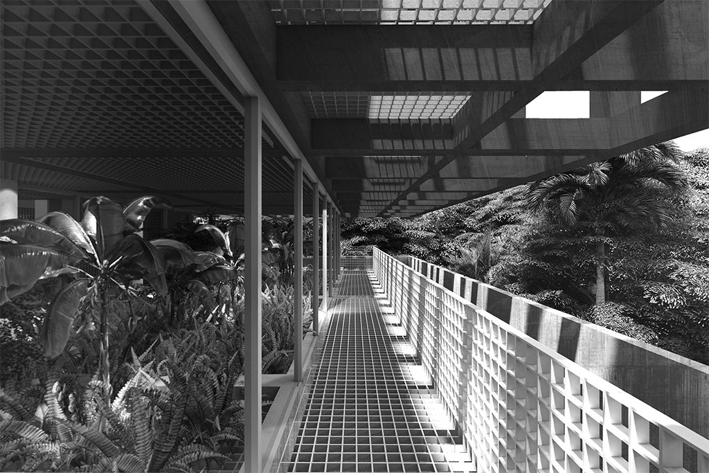 The expansion of the Embassy of Switzerland establishes the diplomatic relationship and the supra-national significance of Singapore and should lead a long-term tradition of bilateral exchange into the future. The expansion is planned as an addition of stories to the building. As such, the context and the corresponding environmental interference are minimally affected, while the reinforcement of the existing building is maximally improved. The garden and the valuable trees are protected. The existing architectural language will be enhanced, and the character of a candid and convincing building will be emphasized. The new building will be extended around a new main body, which naturally seems to hover over the existing building. Between the new and the existing structures, the greenhouse, which stands for innovation and sustainability, will be introduced as median layer. The interpolated mezzanine is visually drawn back, whereas the structure of the upper floor displays an accentuated exteriorized design. The upper floor assimilates the structure of the existing building, supporting itself on it. The new main body protects and casts a shadow over the greenhouse below. The concept is clearly legible and comprehensible, representing transparency and candor.
